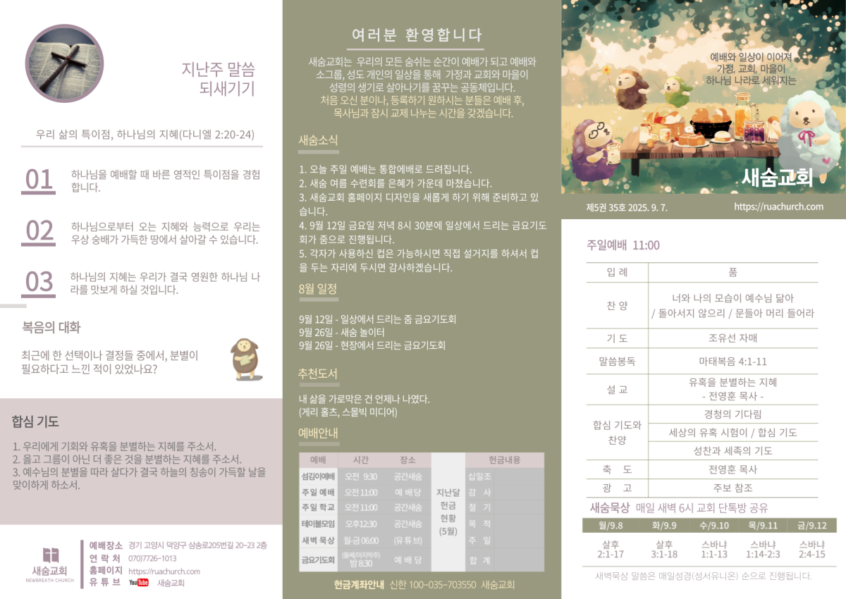 주일 예배 주보(2025-09-07) 페이지 정보 작성자 새숨교회 댓글 0건 조회 838회 작성일 25-09-06 20:27 목록 본문 주보입니다. 댓글 0 댓글목록 등록된 댓글이 없습니다.