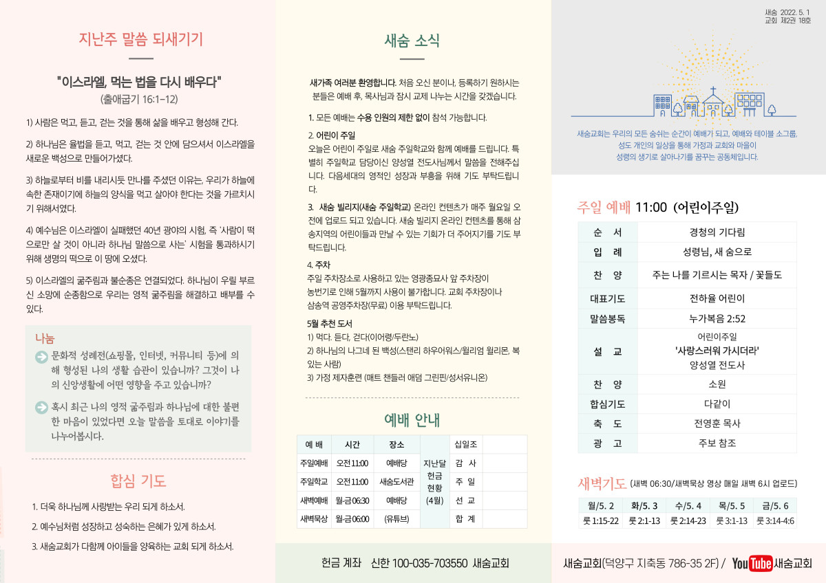 주보(2022-05-01) 페이지 정보 작성자 새숨교회 댓글 0건 조회 4,625회 작성일 22-05-26 11:48 목록 본문 주보(2022-05-01) 댓글 0 댓글목록 등록된 댓글이 없습니다.