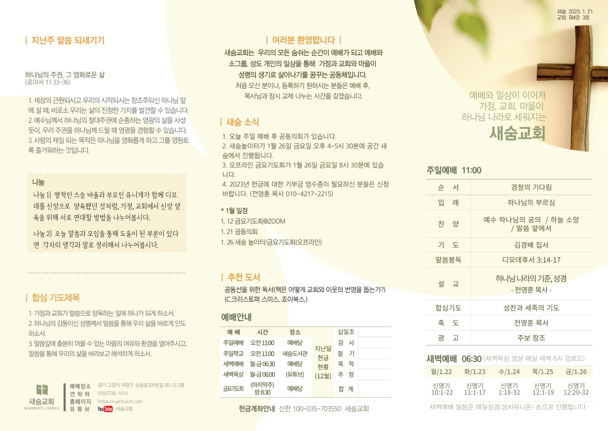 주보(2024-01-21) 페이지 정보 작성자 새숨교회 댓글 0건 조회 3,769회 작성일 24-01-20 23:15 목록 본문 주보입니다 댓글 0 댓글목록 등록된 댓글이 없습니다.