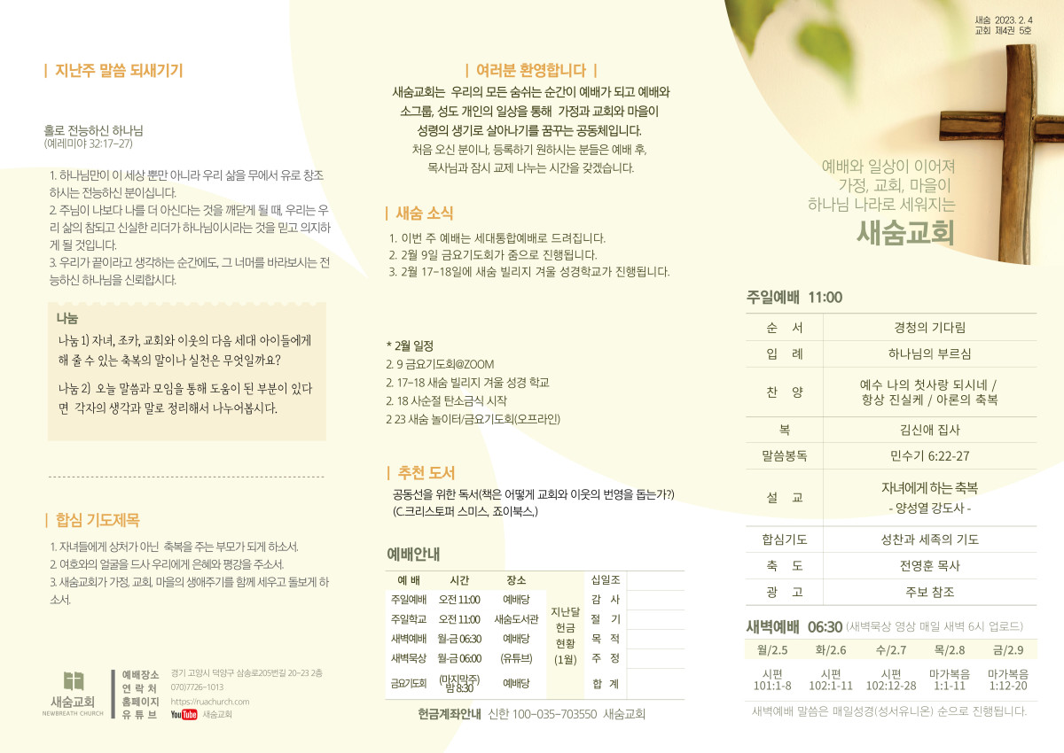 주보(2024-02-04) 페이지 정보 작성자 새숨교회 댓글 0건 조회 4,015회 작성일 24-02-03 10:52 목록 본문 주보입니다. 댓글 0 댓글목록 등록된 댓글이 없습니다.