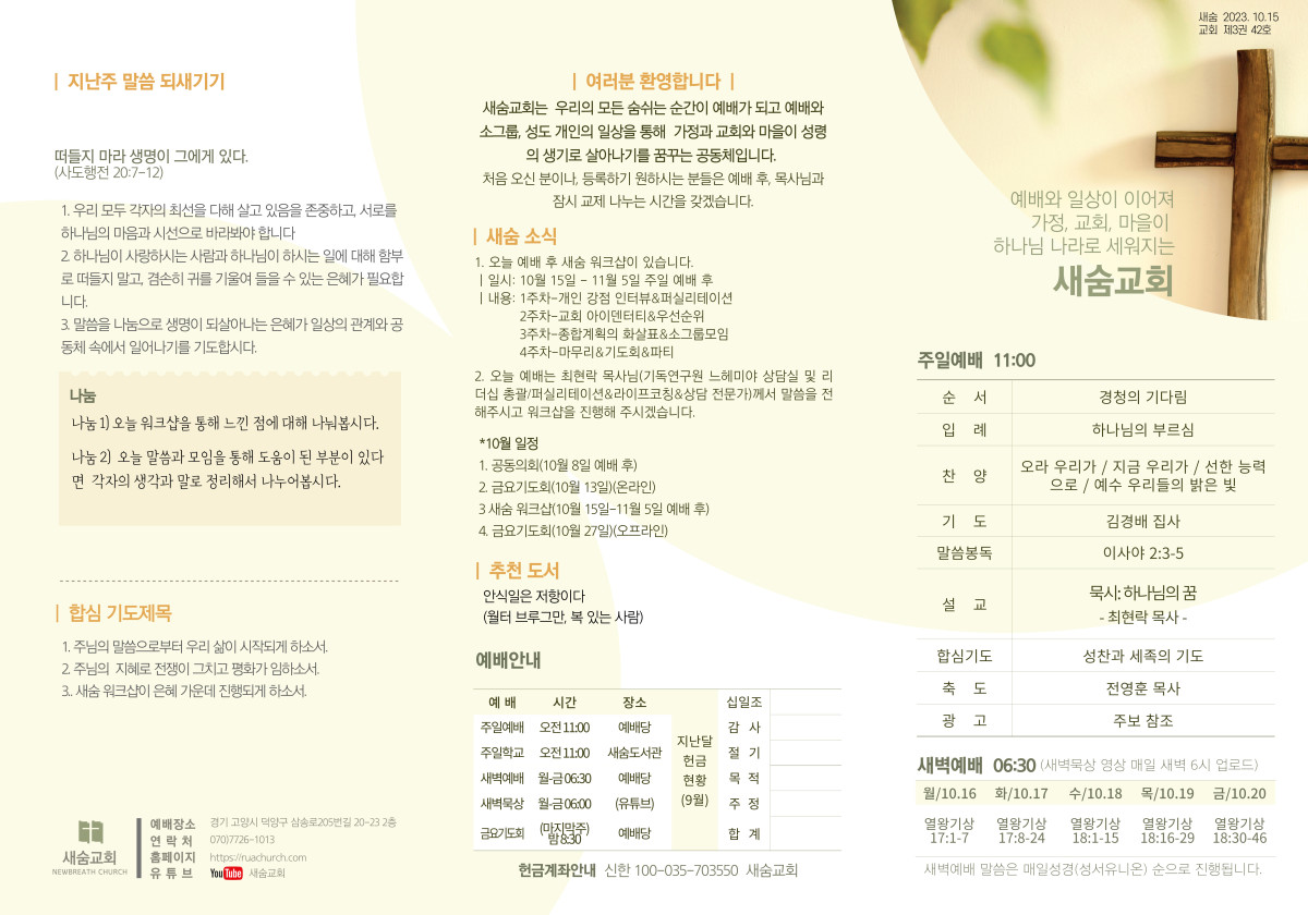 주보(2023-10-15) 페이지 정보 작성자 새숨교회 댓글 0건 조회 4,144회 작성일 23-10-14 12:45 목록 본문 주보입니다 댓글 0 댓글목록 등록된 댓글이 없습니다.