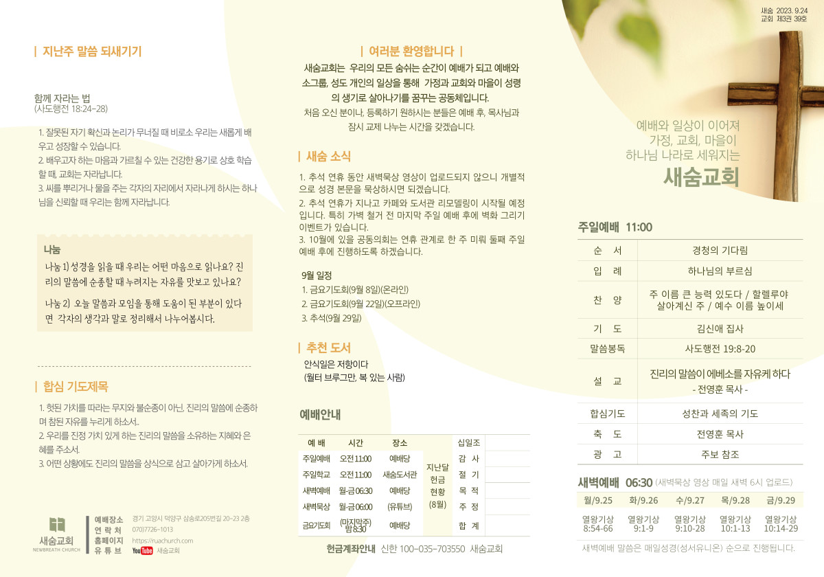 주보(2023-09-24) 페이지 정보 작성자 새숨교회 댓글 0건 조회 3,857회 작성일 23-09-23 14:08 목록 본문 주보입니다 댓글 0 댓글목록 등록된 댓글이 없습니다.