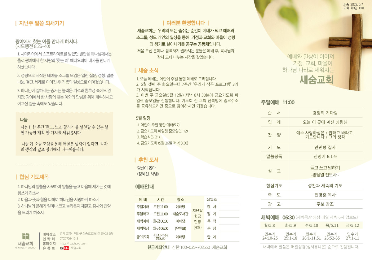 주보(2023-05-07) 페이지 정보 작성자 새숨교회 댓글 0건 조회 4,077회 작성일 23-05-06 11:09 목록 본문 주보입니다 댓글 0 댓글목록 등록된 댓글이 없습니다.