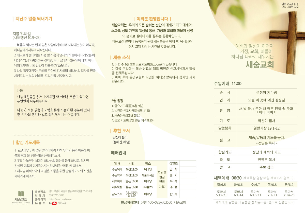 주보(2023-06-04) 페이지 정보 작성자 새숨교회 댓글 0건 조회 4,020회 작성일 23-06-03 15:56 목록 본문 주보입니다 댓글 0 댓글목록 등록된 댓글이 없습니다.