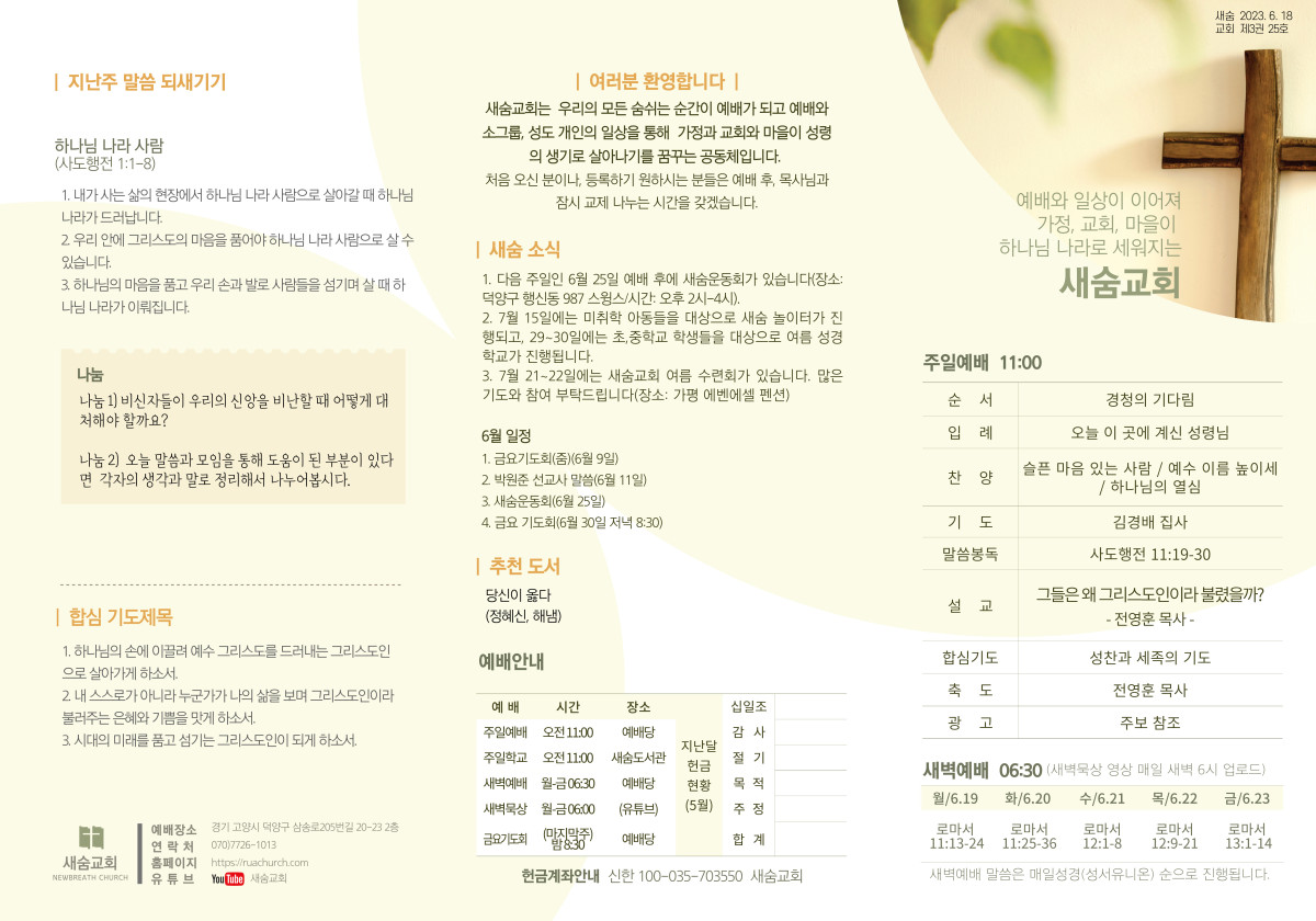 주보(2023-06-18) 페이지 정보 작성자 새숨교회 댓글 0건 조회 3,754회 작성일 23-06-17 12:31 목록 본문 주보입니다 댓글 0 댓글목록 등록된 댓글이 없습니다.