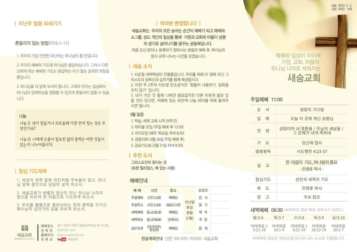 주보(2023-03-05) 페이지 정보 작성자 새숨교회 댓글 0건 조회 4,327회 작성일 23-03-04 14:39 목록 본문 주보입니다 댓글 0 댓글목록 등록된 댓글이 없습니다.