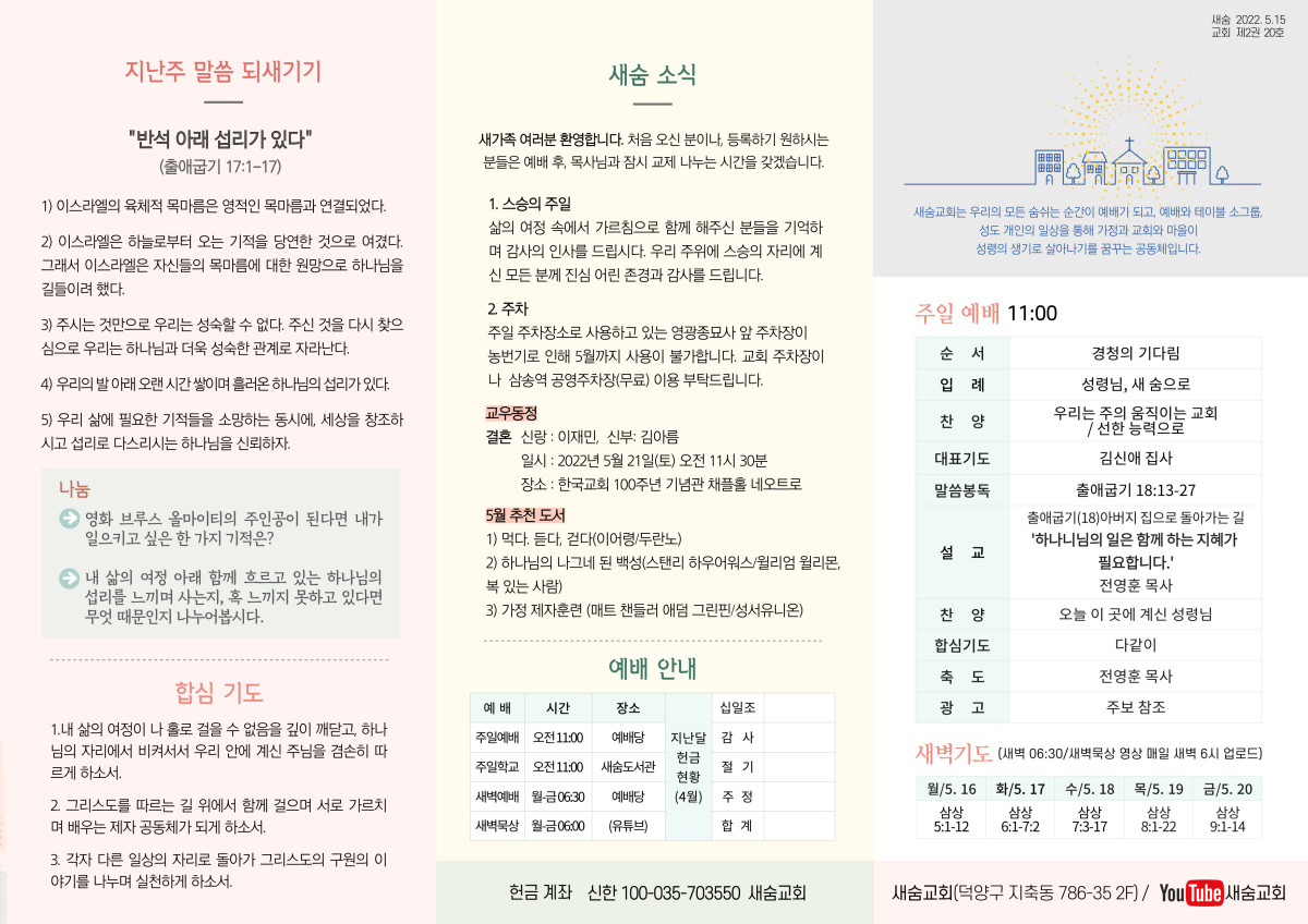주보(2022-05-15) 페이지 정보 작성자 새숨교회 댓글 0건 조회 4,626회 작성일 22-05-26 11:50 목록 본문 주보(2022-05-15) 댓글 0 댓글목록 등록된 댓글이 없습니다.