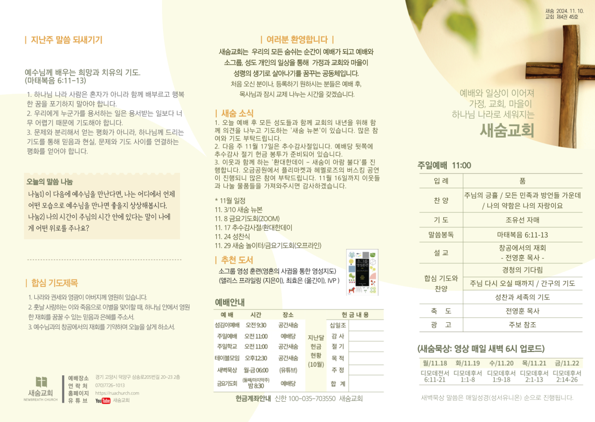 주일 예배 주보(2024-11-10) 페이지 정보 작성자 새숨교회 댓글 0건 조회 1,878회 작성일 24-11-09 17:58 목록 본문 주보입니다 댓글 0 댓글목록 등록된 댓글이 없습니다.