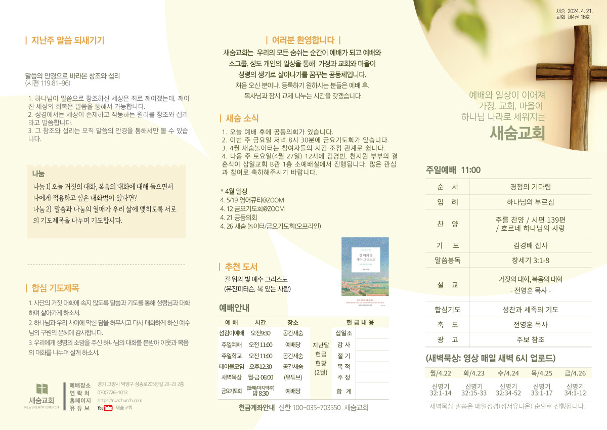 주보(2024-04-21) 페이지 정보 작성자 새숨교회 댓글 0건 조회 3,692회 작성일 24-04-20 16:03 목록 본문 주보입니다 댓글 0 댓글목록 등록된 댓글이 없습니다.
