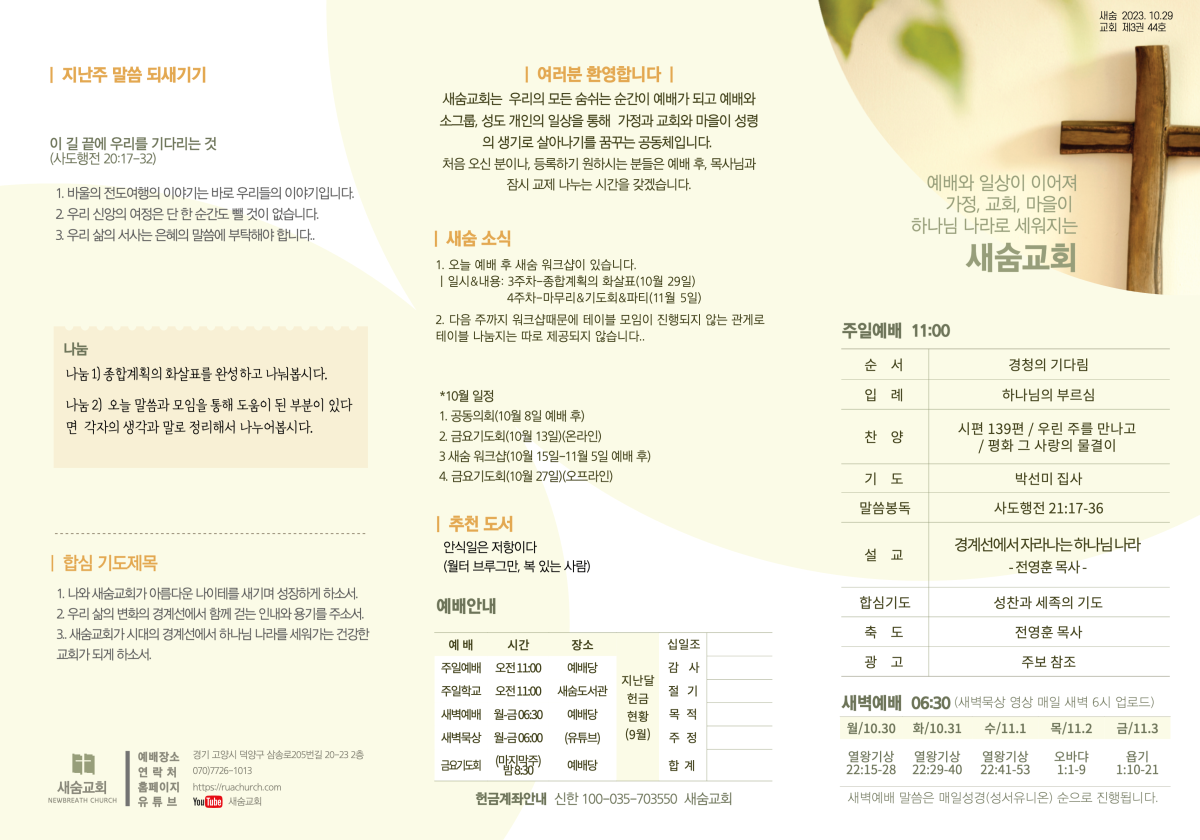 주보(2023-10-29) 페이지 정보 작성자 새숨교회 댓글 0건 조회 3,980회 작성일 23-10-28 13:12 목록 본문 주보입니다. 댓글 0 댓글목록 등록된 댓글이 없습니다.