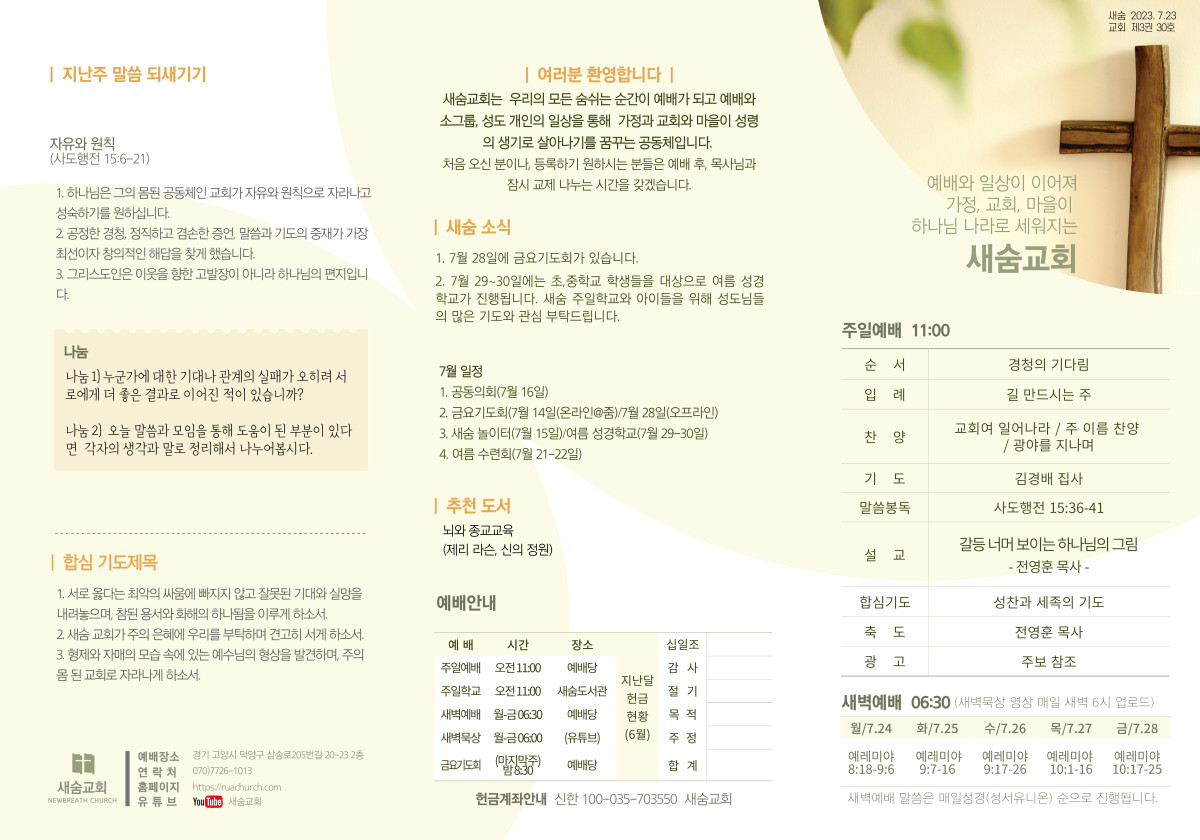 주보(2023-07-23) 페이지 정보 작성자 새숨교회 댓글 0건 조회 4,028회 작성일 23-07-23 10:30 목록 본문 주보입니다 댓글 0 댓글목록 등록된 댓글이 없습니다.
