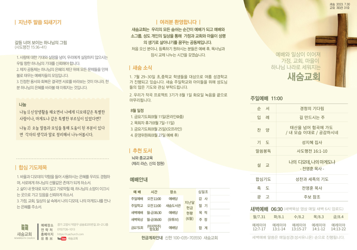 주보(2023-07-30) 페이지 정보 작성자 새숨교회 댓글 0건 조회 4,331회 작성일 23-07-29 16:37 목록 본문 주보입니다. 댓글 0 댓글목록 등록된 댓글이 없습니다.